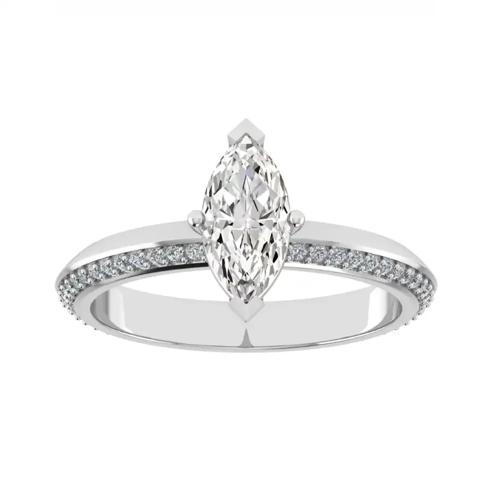 Contoured, chevron, and open bands are the most suited ring types for the brides who have already opted for the marquise diamond cuts because these designs and patterns resemble the shape and magnify the majesty of the diamond.