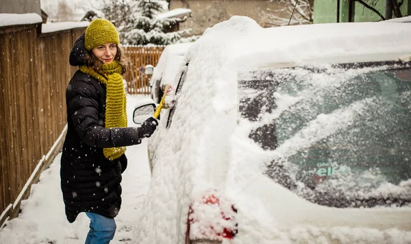 Pouring hot water on an icy windshield can cause glass to break. Other safer methods include using the defroster on the car and using a soft brush to remove snow and a plastic scraper for ice.
