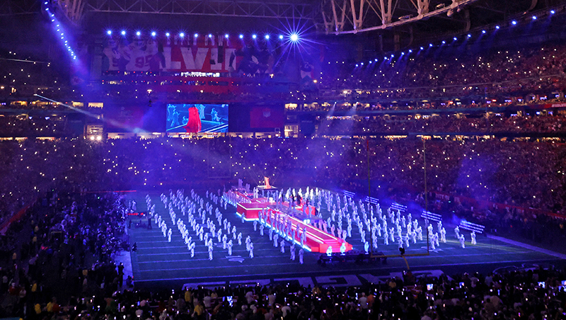 That is not a theoretical system. The halftime show is assembled on-site on the field within 6 to 7 minutes, which is a limitation that influences almost all production decisions, such as the extent to which it is safe to do miking and mixing live.
