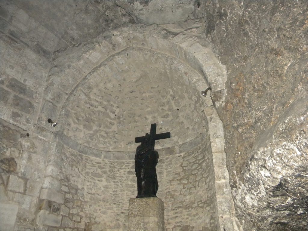 There is an older world beneath the church: a pursuit that goes back to the Iron Age (1200-586 B.C.). The marks of quarrying include cut faces, stepped voids, discarded stone, which are subsequently reused by successive generations of people rather than erased. In Jerusalem, forsaken quarries might be turned into peripheral tombs; the bottom has been hacked, and the walls hewn off. That prolonged prehistory contributes to the fact that a burial landscape might exist where extraction had been the purpose.