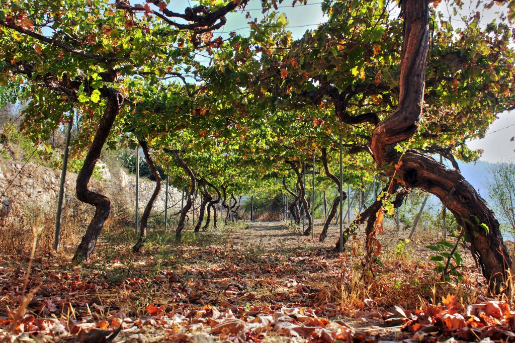 1. Grape traces and pits of olives that lead to a garden
