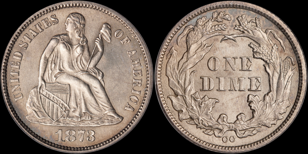 4. 1873-CC Liberty Seated Dime Without Arrows