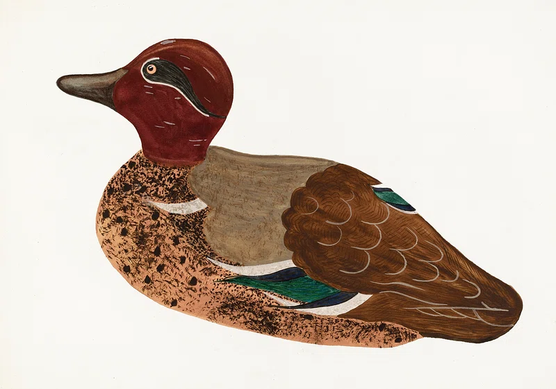 Miniature duck decoys compress the language of American folk carving into something shelf-sized. Often measuring five inches or less, they still ask to be judged like larger decoys: proportion, paint, stance, carving confidence, and the sense that the maker understood the bird rather than merely copied its outline.