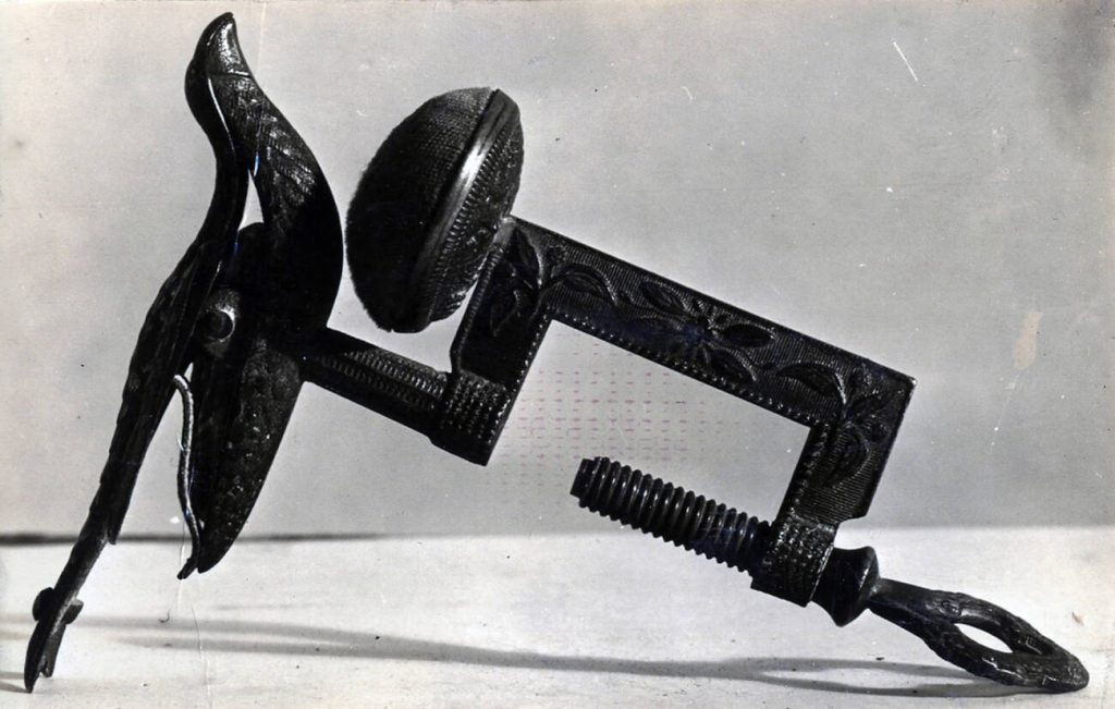 Birds became the best-known version, but clamps also appeared as animals, figures, and ornamental forms that made them suitable as wedding or engagement gifts in the 19th century. Their appeal now comes from that double identity: household implement and decorative sculpture in one compact piece. Cushions, attachments, and unbroken clamp mechanisms all matter.